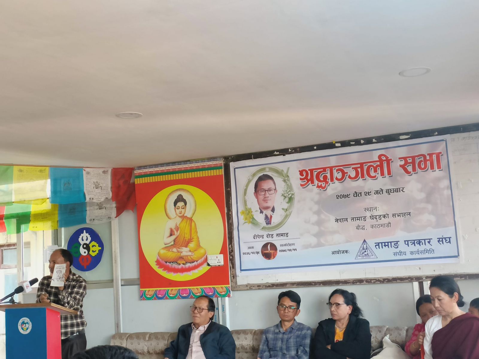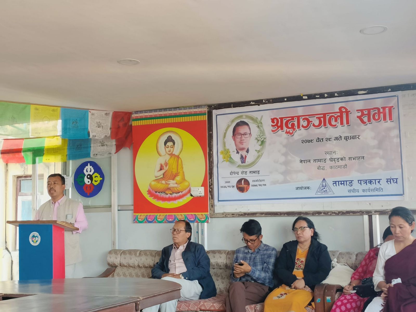काठमाडौं । चलचित्र निर्देशक तथा वरिष्ठ पत्रकार दिपेन्द्र दोङ बहुआयामिक व्यक्ति भएको वक्ताहरुले स्मरण गर्नुभएको छ । नेपाल तामाङ पत्रकार संघले काठमाडौं बुधबार तामाङ घेदुङको संघीय कार्यालय चुच्चेपाटीमा आयोजना गरेको श्रद्धाञ्जली सभामा स्व. दिपेन्द्र दोङलाई सम्झनुहुँदै अग्रज व्यक्तिहरुले उक्त धारणा राखेका हुन् ।