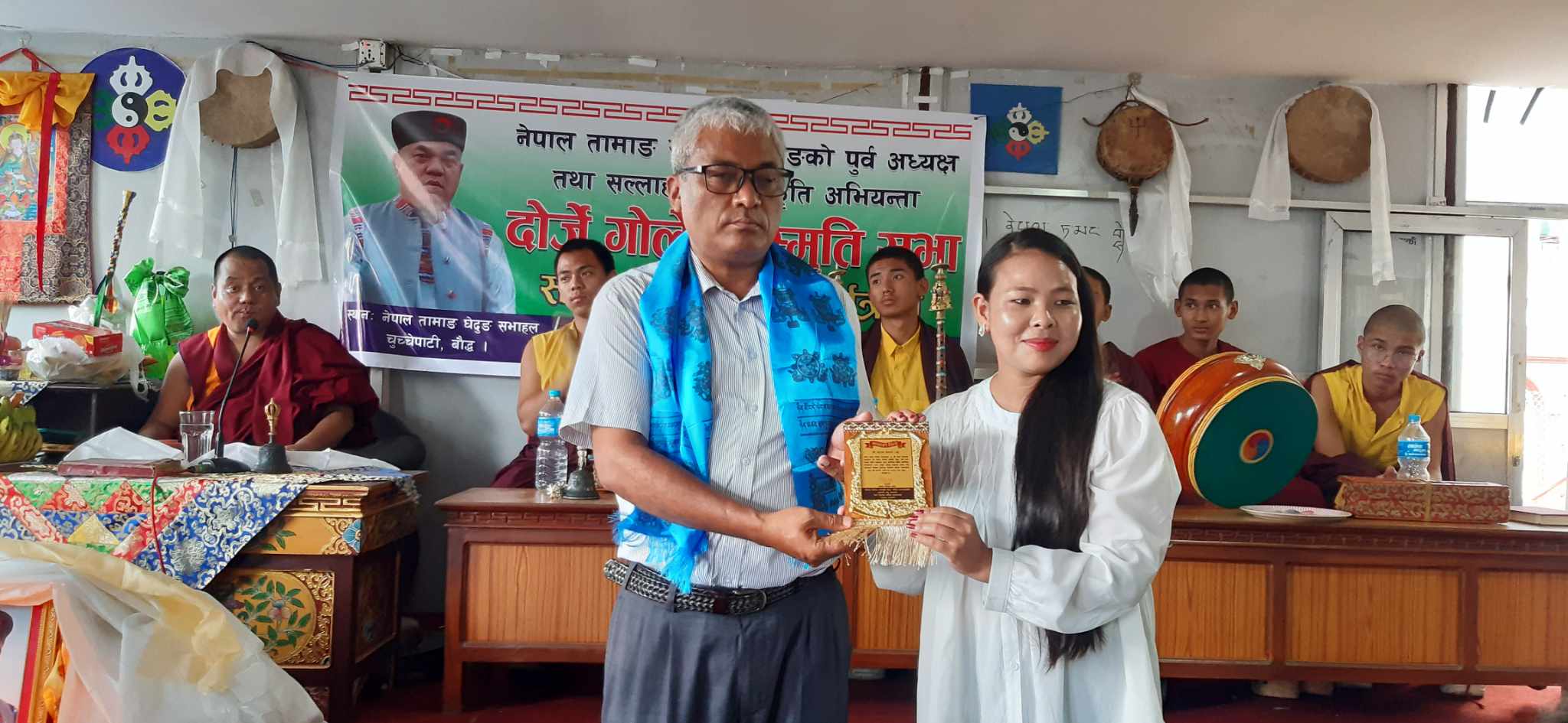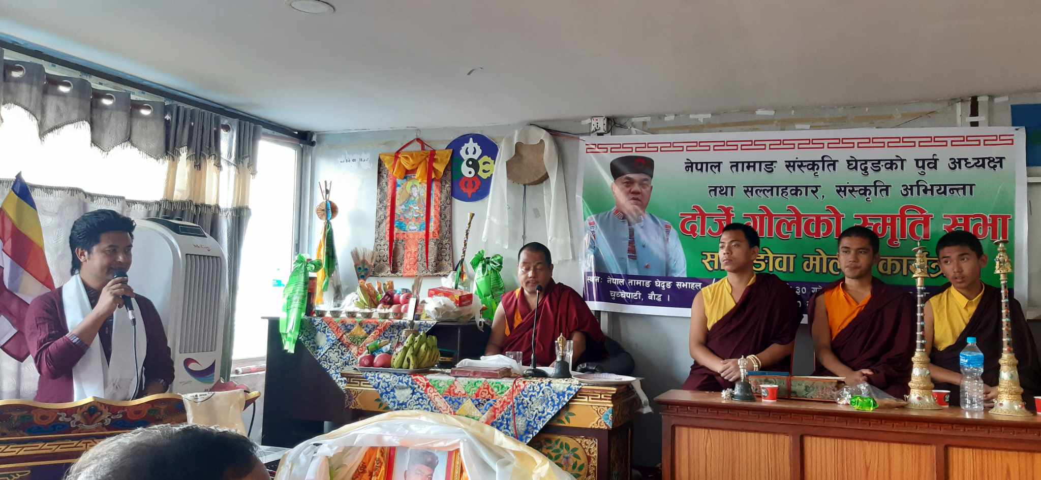 काठमाडौं : नेपाल तामाङ संस्कृति घेदुङले शनिबार आफ्ना सल्लाहकार,पूर्व अध्यक्ष एवं सांस्कृतिक अभियन्ता स्व. दोर्जे गोलेको पहिलो स्मृतिसभा तथा ङोवा मोलम कार्यक्रम गरेको छ । घेदुङको संघीय कार्यालय चुच्चेपाटी,बौद्धमा स्मृतिसभाको आयोजना गर्दै संस्कृति घेदुङले गोलेले तामाङ समुदायका लागि पुर्याउनुभएको योगदानको सम्झना गरेको हो ।