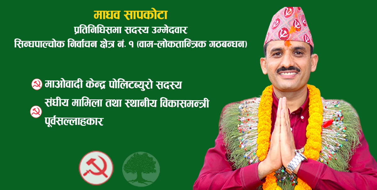 आगामी मंसिर ४ गते हुने प्रतिनिधिसभा र प्रदेशसभा निर्वाचनका लागि सिन्धुपाल्चोक क्षेत्र नम्बर १ बाट माओवादी केन्द्रका पोलिटब्युरो सदस्य माधव सापकोटा 'सुबोध' सत्ता गठबन्धनका साझा उम्मेदवार हुनुहुन्छ ।