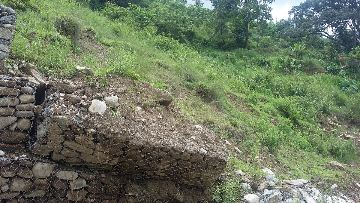 छहरे- राष्ट्रिय मावि सडक सडक खण्डको सिक्रेमा गत वर्ष निर्माण सकिएपछि ढलेको वाल । तस्बिर : ग्लोबल मिडिया