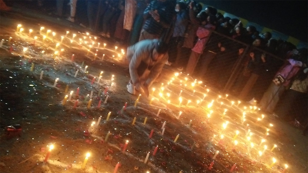काठमाडौं । तामाङ समुदायले टुँडिखेलमा सोनाम ल्होछारको पूर्वसन्ध्यामा शनिबार दीप प्रज्वलन गरेका छन् । तीन दिवसीय ल्होछार महोत्सवका अवसरमा शनिबार सांस्कृतिक कार्यक्रममा रमाइरहेका तामाङ समुदायले साँझ दीप प्रज्वलन गरेका हुन् । दीप प्रज्वलनमा नेपाल तामाङ घेदुङका अध्यक्ष मोहन गोले तामाङलगायत पदाधिकारी, कार्यसमिति सदस्य र सर्वसाधारणले समेत साथ दिएका थिए ।