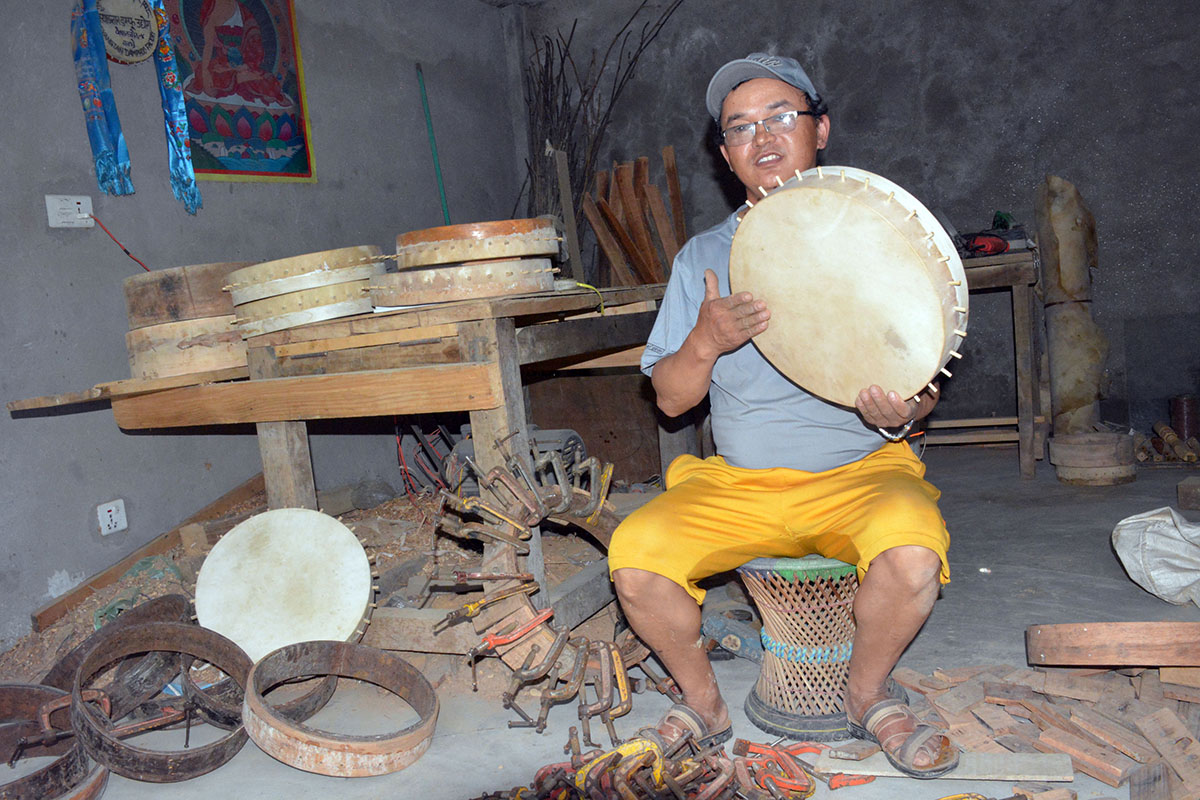 बनेपा । काभ्रेपलाञ्चोकको बेथानचोक गाउँपालिका–४ स्थित सलान्दुबगरका लीलाबहादुर स्याङ्तान डम्फु बनाउने पेसामा लागेर राम्रो आम्दानी गर्दै आउनुभएको छ । तामाङ जातिको सांस्कृतिक बाजामा डम्फुको माग हुन थालेकाले उहाँले ‘स्याङ्तान डम्फु उद्योग’ सञ्चालन गरेर सो पेसालाई विगत १५ वर्षदेखि निरन्तरता दिँदै आउनुभएको हो ।