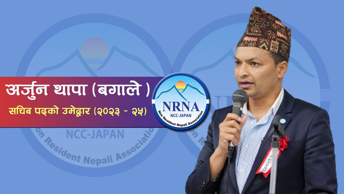 नुवाकोट । नुवाकोट पञ्चकन्या गाउँपालिका-३ का अर्जुन थापा (बगाले) ले गैर आवासीय नेपाली संघ (एनआरएनए) जापानको सचिव पदमा उम्मेदवारी दिनुभएको छ ।
