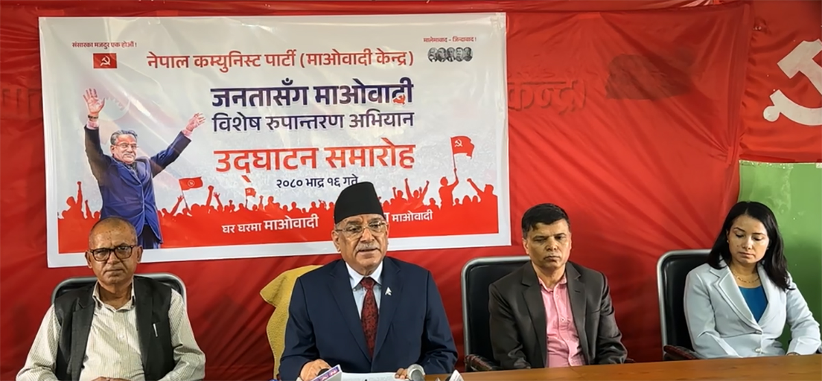 काठमाडौँ । नेकपा (माओवादी केन्द्र)ले पार्टीलाई जनतासँग जोड्ने उद्देश्यले शनिबारदेखि देशभर ‘जनतासँग माओवादी’ विशेष रुपान्तरण अभियान सुरु गरेको छ ।