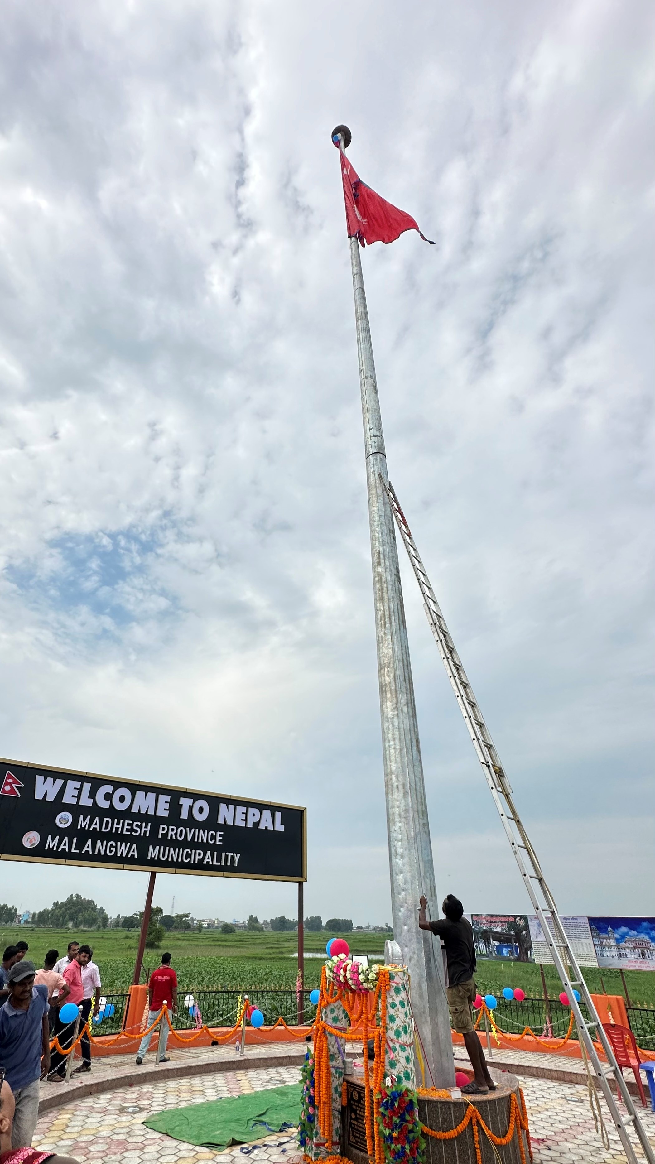 मलङ्गवा (सर्लाही), २० भदौ : नेपाल र भारतको सीमा जोडिने सर्लाहीको मुख्य नाका मलङ्गवा नगरपालिका–८ मा एक सय आठ फिट उचाइमा राष्ट्रिय झण्डा फहराइएको छ । मङ्गलबार एक समारोहबीच मलङ्गवाको सोनवरसा सीमा नाकामा प्रदेश सरकारको सहयोगमा निर्माण गरिएको पार्कमा राखिएको राष्ट्रिय झण्डा मधेस प्रदेशका अर्थमन्त्री सञ्जयकुमार यादवले फहराउनुभयो ।