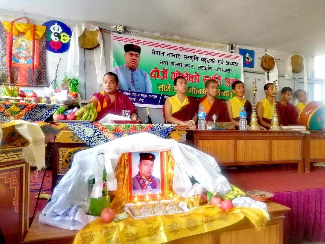 काठमाडौं : नेपाल तामाङ संस्कृति घेदुङले शनिबार आफ्ना सल्लाहकार,पूर्व अध्यक्ष एवं सांस्कृतिक अभियन्ता स्व. दोर्जे गोलेको पहिलो स्मृतिसभा तथा ङोवा मोलम कार्यक्रम गरेको छ । घेदुङको संघीय कार्यालय चुच्चेपाटी,बौद्धमा स्मृतिसभाको आयोजना गर्दै संस्कृति घेदुङले गोलेले तामाङ समुदायका लागि पुर्याउनुभएको योगदानको सम्झना गरेको हो ।