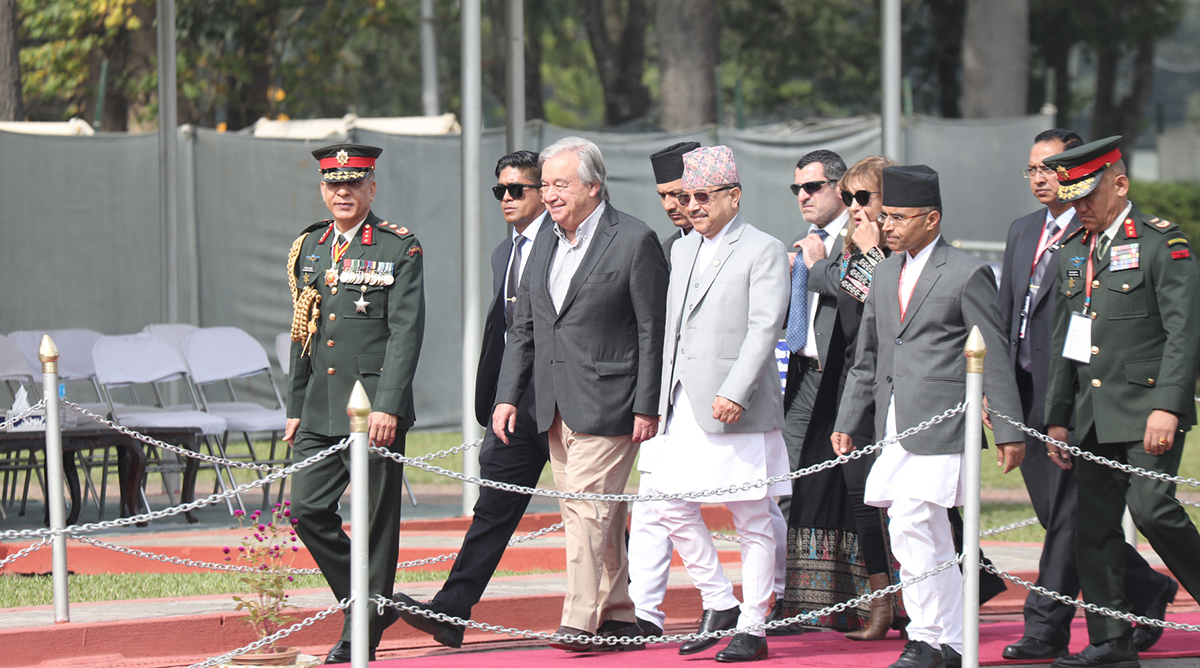 प्रधानमन्त्री पुष्पकमल दाहाल ‘प्रचण्ड’को मैत्रीपूर्ण निमन्त्रणामा उहाँ नेपालको औपचारिक भ्रमणका लागि यही कात्तिक १२ गते यहाँ आउनुभएको थियो । महासचिव गुटेरेसले भ्रमणका क्रममा राष्ट्रपति रामचन्द्र पौडेल र प्रधानमन्त्री पुष्पकमल दाहालसँग छुट्टाछुट्टै भेटवार्ता गर्नुभएको थियो ।