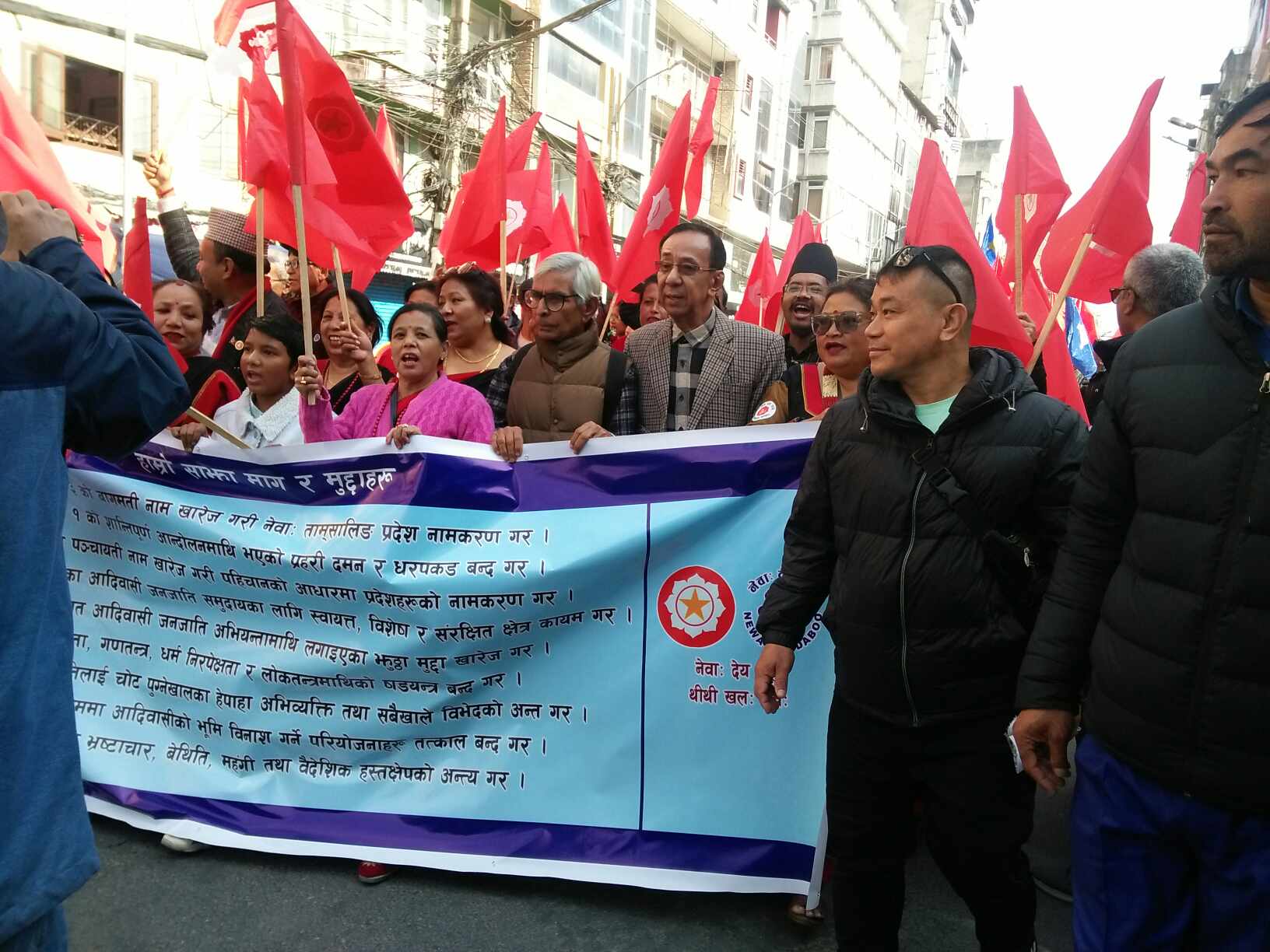 काठमाडौं । वाग्मती प्रदेशको नाम नेवाः ताम्सालिङ प्रदेशको हुनुपर्ने माग राख्दै तामाङ र नेवार समुदायले आज काठमाडौंमा प्रदर्शन गरेका छन् । ताम्सालिङ संयुक्त संघर्ष समिति, नेपाल तामाङ घेदुङ र नेवा दय दवु थिथि खलः पुचःले काठमाडौंको भूगोलपार्क न्युरोडदेखि असनचोक सम्म प्रदर्शन गरेका हुन् ।