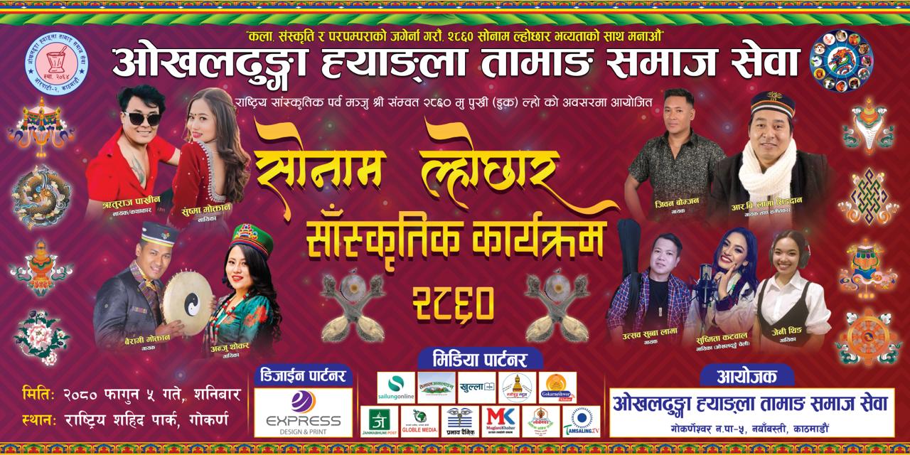काठमाडौं । ओखलढुङ्गा ह्याङ्ला तामाङ समाज सेवाको आयोजनामा ‘सोनाम ल्होछार सांस्कृतिक कार्यक्रम’ हुने भएको छ ।