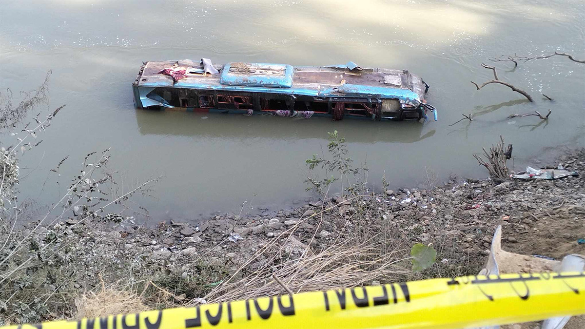लुम्बिनीबाट चालक दलका सदस्यसहित ५४ यात्रु बोकेर काठमाडौँ आएको लु२ख २१२१ नम्बरको बस सडकबाट अन्दाजी १०० मिटर तल त्रिशूली नदीमा खस्दा १२ जनाले ज्यान गुमाएका छन् भने ४२ जना घाइते भएका छन् ।