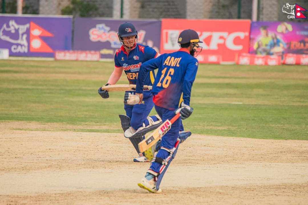 बलिङतर्फ नेपालका सोमपाल कामी र सागर ढकालले तीन तीन तथा अभिनाश बोहराले एक विकेट लिए । एक सय ७३ रनको विजयी लक्ष्य पछ्याएको नेपालले १८ दशमलव पाँच ओभरमा चार विकेट गुमाउँदै पूरा ग¥र्यो ।