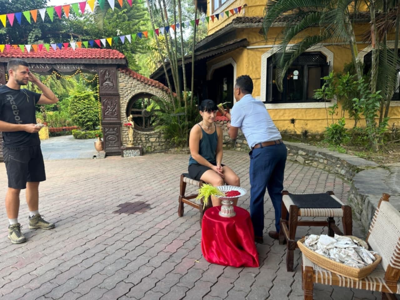 सौराहास्थित सपना भिलेजका प्रबन्ध निर्देशक धुव्र गिरीले बाह्य पर्यटकहरुलाई टीका र जमरा लगाइदिनुभयो । साथै उहाँले पर्यटकको सेवाका लागि दसैँका दिन पनि होटल खुला राखेको बताउनुभयो । पालैपालो टीका र जमरा लगाउँदा बाह्य पर्यटकहरु दङ्ग भएका छन् । फ्रान्स, जर्मन र नेदरल्याण्डका गरी २६ जनाले यहाँ दसैँको टीका र जमरा लगाए ।