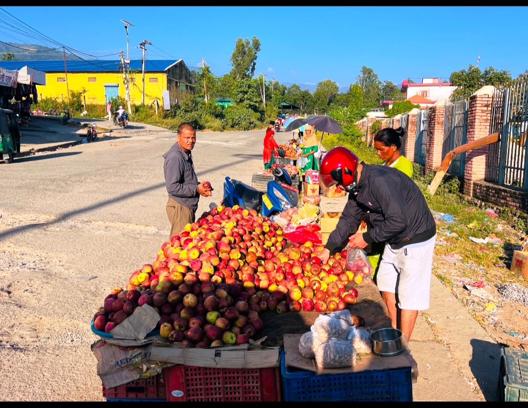 चीन र भारतको स्याउ बढी खपत हुने गरेको नेपालगन्जमा हाल कर्णालीको स्याउले बजार लिएको बाँके कोहलपुरका कृष्ण ओलीले जानकारी दिनुभयो । नेपालसँग सिमाना जोडिएका भारतीय भागहरूमा समेत कर्णालीकै स्याउले बजार पाएको उहाँले बताउनुभयो ।