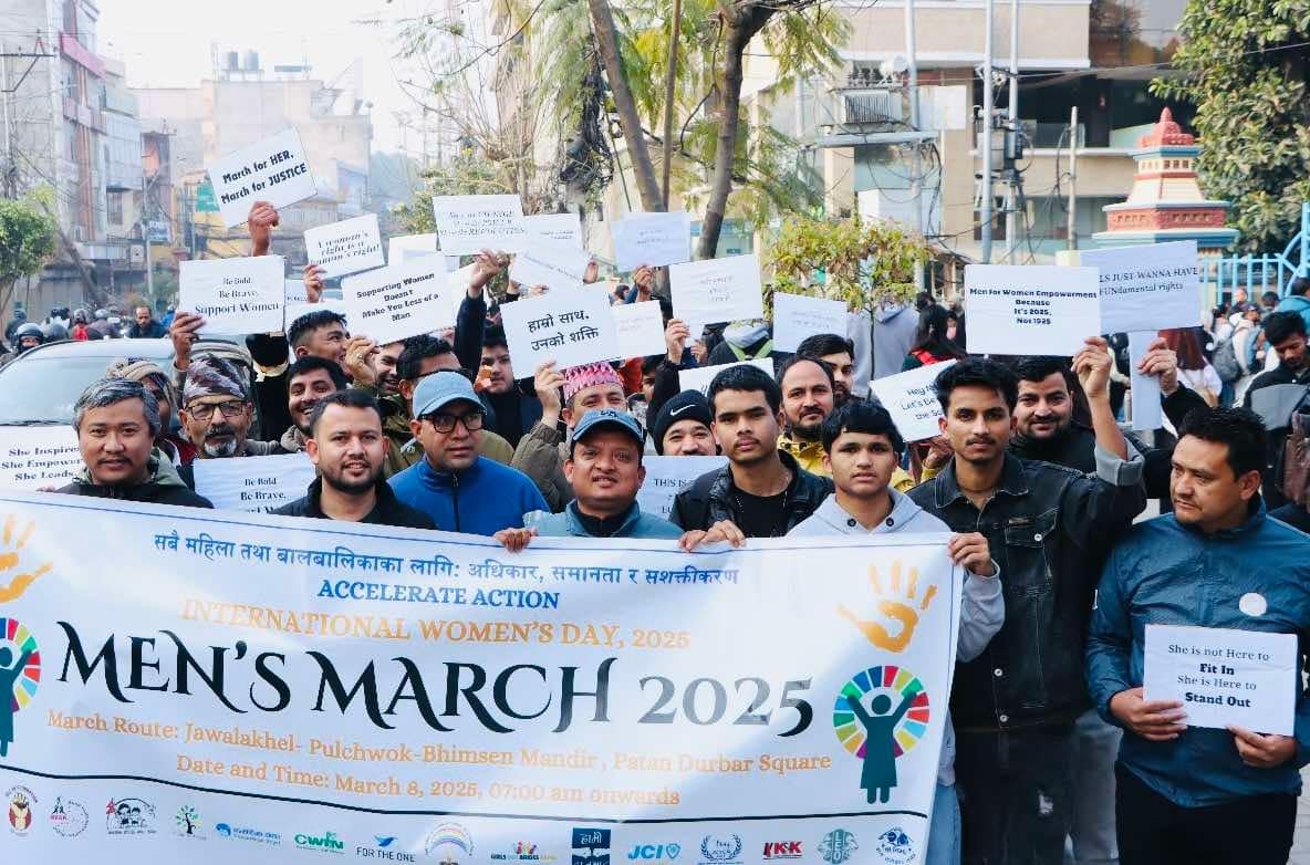 ललितपुर । ११५ औं अन्तर्राष्ट्रिय नारी दिवसको अवसरमा महिला सशक्तिकरणका पक्षमा पुरुष ऐक्यबद्धता मार्चपास भएको छ । शनिबार ललितपुरमा महिला हिंसा अन्त्यसँगै लैङ्गिक समानता भएको समाज निर्माणका लागि ऐक्यबद्धता जनाउँदै सयौँ पुरुषहरुले मार्च गरेका हुन् ।