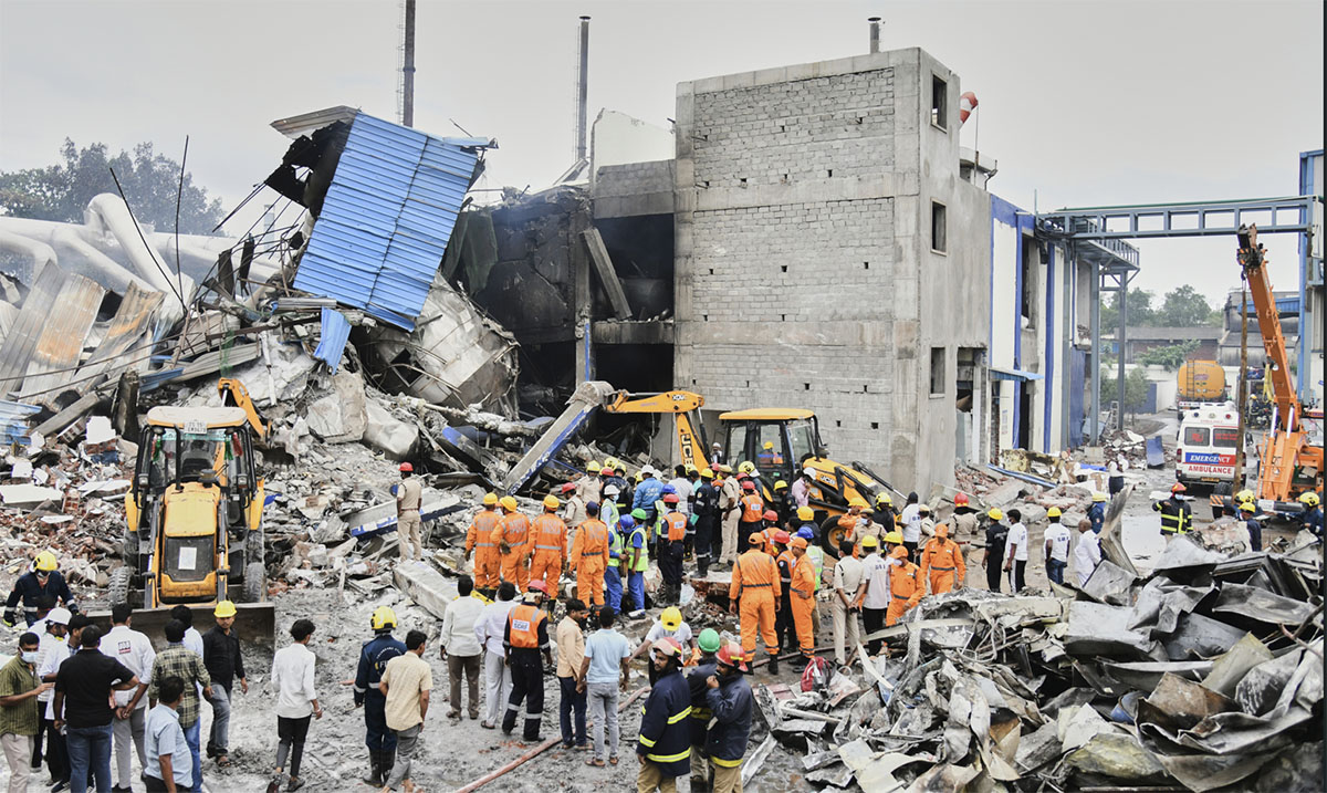 राज्यको राजधानी हैदराबादबाट करिब ५० किलोमिटर (३१ माइल) टाढाको औद्योगिक क्षेत्रमा भएको दुर्घटना स्थलबाट दमकलकर्मीहरूले ३४ जना कामदारका जलेका शवहरू फेला पारेको राज्यका दमकल सेवा निर्देशक जी.भी. नारायण रावले बताउनुभयो ।