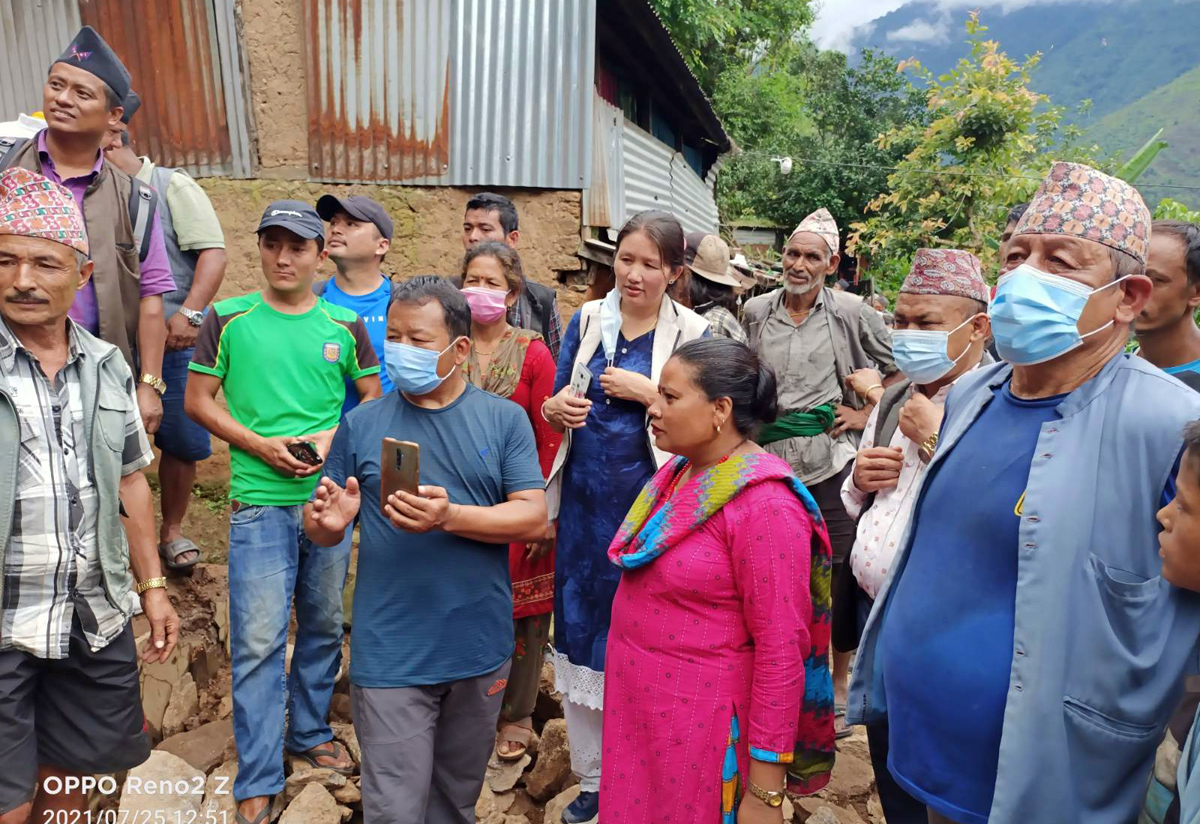 नुवाकोट । जिल्लाबाट निर्वाचित जनप्रतिनिधिहरुले दुप्चेश्वर गाउँपालिका ७, शिखरबेंसीका पहिरोस्थलको अवलोकन र प्रभावित स्थानीयलाई भेट्नुभएको छ । संघीय सांसद हितबहादुर तामाङ, वाग्मती प्रदेशका उपसभामुख राधिका तामाङले आइतबार शिखरबेंसी पुगेर स्थलगत अवलोकन र पहिरो पीडितलाई भेट्नु भएको हो । त्यसक्रममा सांसद र उपसभामुख तामाङले नेकपा (माओवादी केन्द्र) दुप्चेश्वर गाउँपालिका संगठन समितिको समन्वयमा उपलब्ध जस्तापाता प्रभावितलाई हस्तान्तरण गर्नुभयो ।