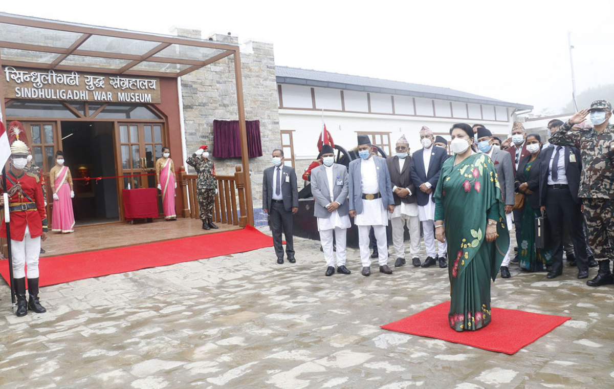 सिन्धुली । राष्ट्रपति विद्यादेवी भण्डारीले सिन्धुलीगढी युद्ध संग्रहालयको उद्घाटन गर्नुभएको छ । नेपाली सेनाले निर्माण गरेको उक्त संग्रहालयको बुधबार राष्ट्रपति भण्डारीले उद्घाटन गर्नुभएको हो। संग्रहालयको उद्घाटन गर्नुहुँदै राष्ट्रपति भण्डारीले सिन्धुलीगढी संग्रहालय नेपालकै पहिलो युद्ध संग्रहालय रहेको बताउनुभयो । उहाँले नेपाललाई बिश्वमा चिनाउने, नेपाली भनेर पहिचान दिलाउने स्थानहरुमध्ये सिन्धुलीगढी पनि एक रहेको बताउनुभयो । राष्ट्रति भण्डारीले ऐतिहासिक सिन्धुलीगढीलाई संरक्षण र संबद्र्धन गर्नु सम्पूर्ण नेपालीको कर्तब्य रहेको बताउनुभयो ।