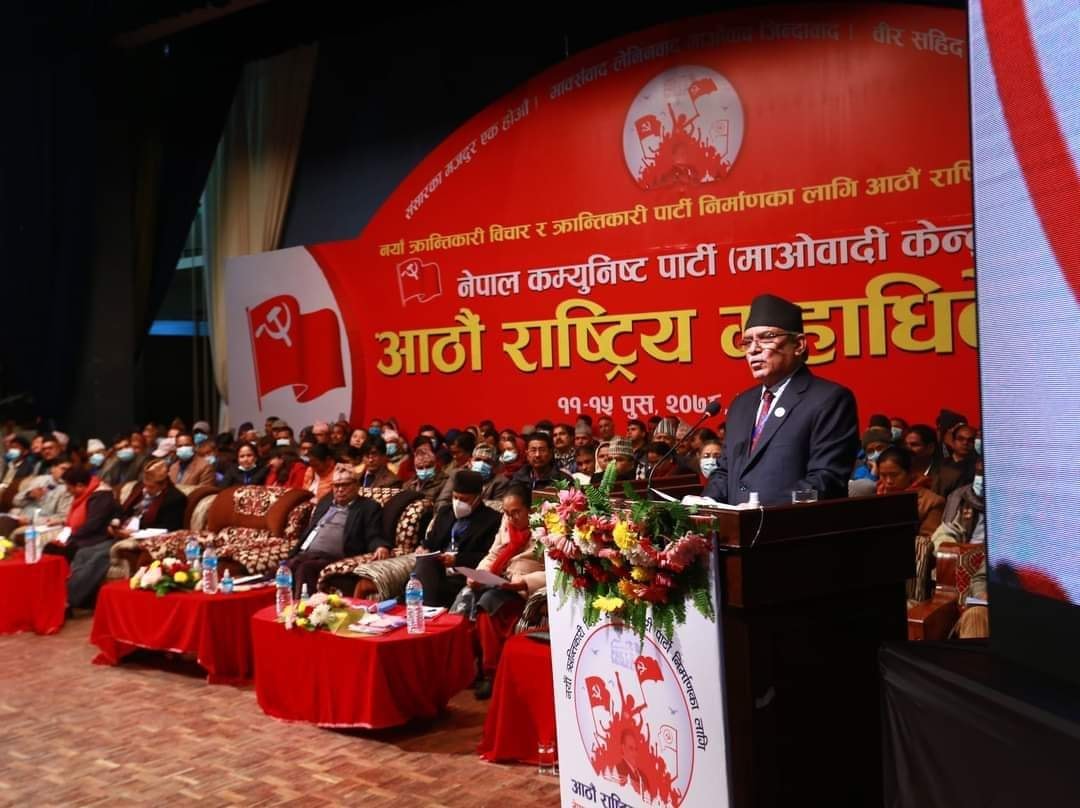नेकपा(माओवादी केन्द्र)को आठौँ राष्ट्रिय महाधिवेशन आइतबारदेखि काठमाडौँमा शरु भएको छ । महाधिवेशनमा एक हजार ७०० बढी प्रतिनिधि सहभागी छन् । राजनीतिक क्रान्तिमा श्रेष्ठता हासिल गरेको माओवादीले यस महाधिवेशनबाट थप प्रष्ट विचारसहित आफूलाई स्थापित गर्ने बताइरहेको छ । अध्यक्ष पुष्पकमल दाहाल ‘प्रचण्ड’ले सोमबार अढाई घण्टा लगाएर राजनीतिक प्रतिवेदन पेश गर्नुभयो ।