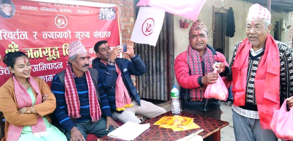 वडा कमिटीका सचिव बिनोद कडेलले आगामी निर्बाचनमा जित हासिल गरेर स्थानीय जनताको सेवा गर्न माओवादी आतुर रहेको बताउनु भयो । कार्यक्रमका सभापती तथा वडा कमिटीका अध्यक्ष श्यामप्रसाद पान्डेले आगामी निर्वाचनमा जीत हासिल गर्न कुनै कठिनाई नरहेको भन्दै पाँच बर्ष काम नगरी जनताको सेवा भन्दा नीजि आर्जनमा रमाएका बिपक्षीको भन्डाफोर गर्न र एकजुट भएर अगाडि बढ्न आग्रह गर्नुभयो ।