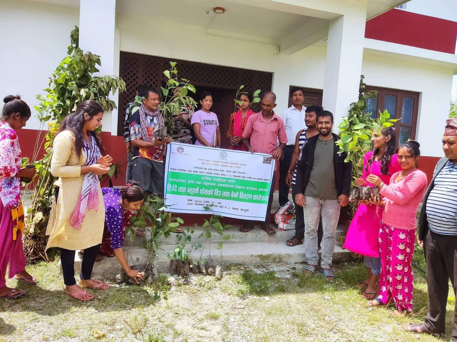 मंगलबार असार २८ गते गाउँपालिका अध्यक्ष सुनुवारको प्रमुख आतिथ्यमा मूल, समूह, बहिनी समूह, ब्लक समिति र व्यावसायिक कृषहरूलाई वर्षे घाँसको बिउ र बेर्ना वितरण गरिएको छ ।