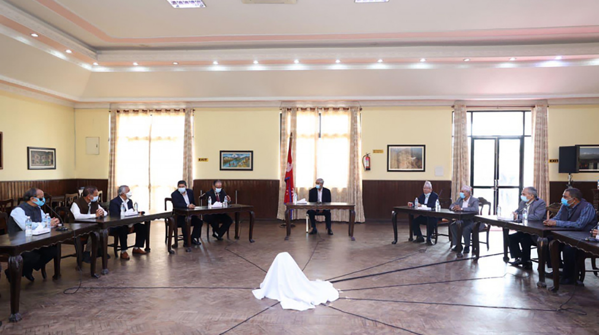 छलफलमा चाँडै नै सरकारलाई पूर्णता दिने विषयमा सहमति भएको नेकपा (एस)का नेता मेटमणि चौधरीले जानकारी दिनुभयो । ‘भरसक भोलि नै मन्त्रिपरिषद् विस्तार हुन्छ । नभए २८ भदौमा सर्वोच्च अदालतको निर्णय आएपछि सरकार पूर्ण हुनेछ’, चौधरीले भन्नुभयो । एमालेले तत्कालीन एमालेका १४ जना सांसदलाई कारबाहीको माग गर्दै सर्वोच्चमा रिट दायर गरेको छ । उक्त रिटको सुनुवाइ २८ भदौमा तोकिएको छ ।